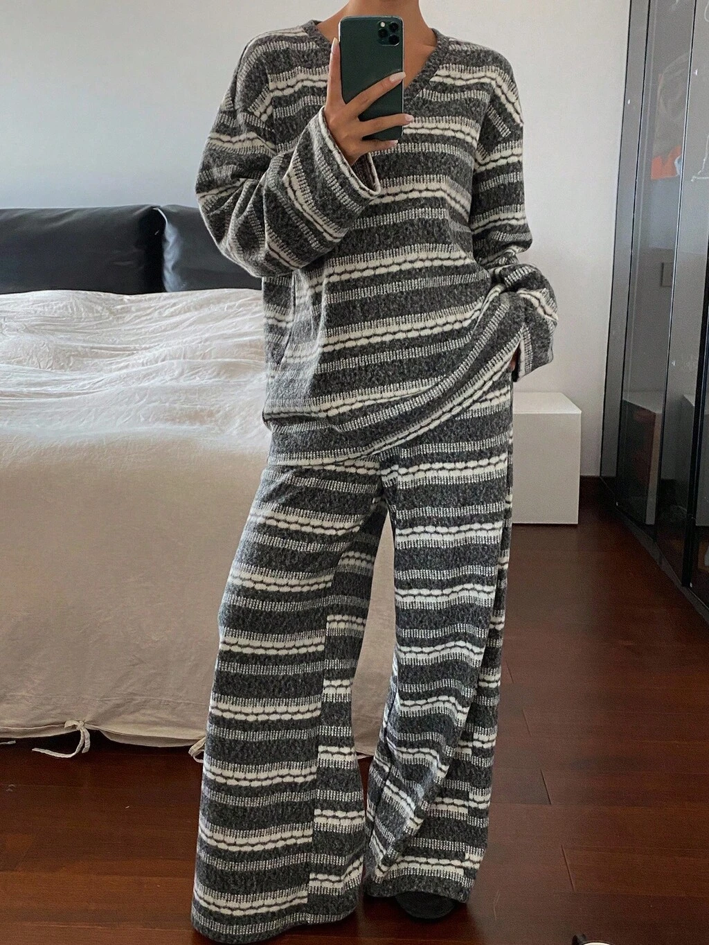 Women's Striped Casual Long Sleeve Top And Pants 2 Pieces Set Fall