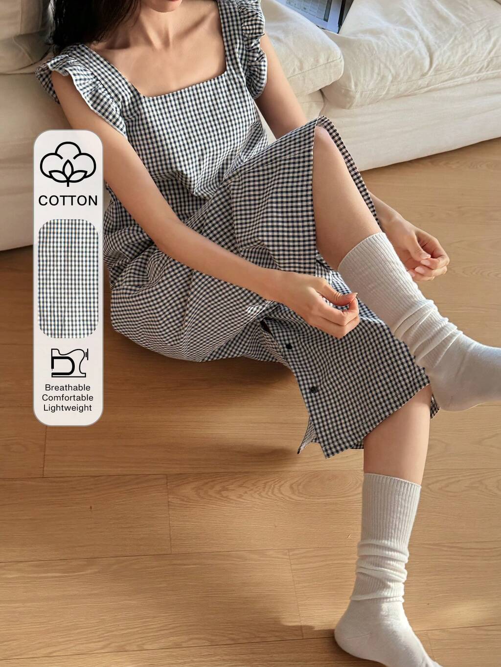 Cute Plaid Ruffle Trim Women's Jumpsuit Loungewear