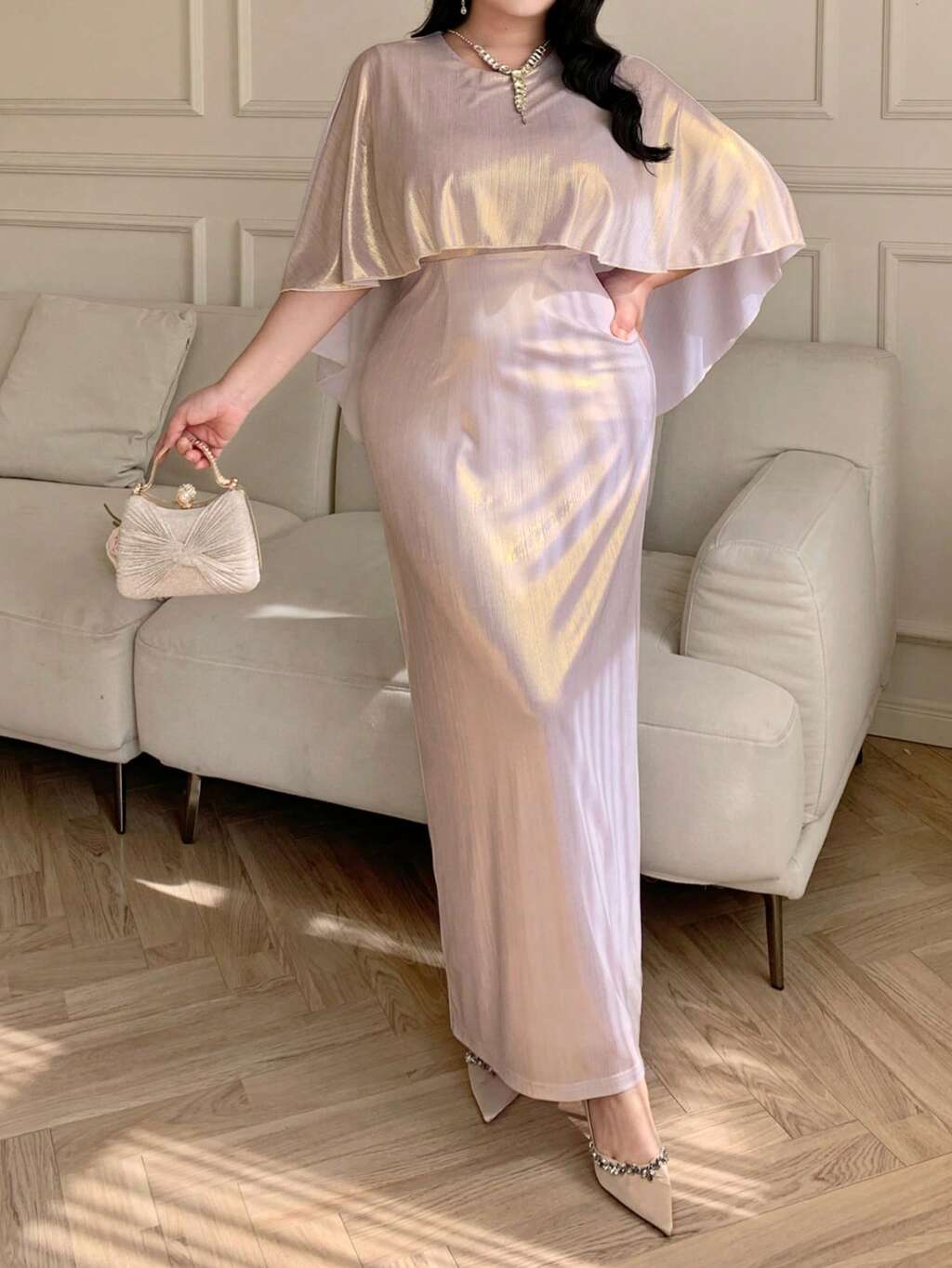 Dazy Plus Elegant Satin Fitted Long Slip Dress With Sequin Embroidery, Loose Coverup, Resort Style, Spring/Summer, Plus Size Women 2 Pieces Set Lounge Sets For Women