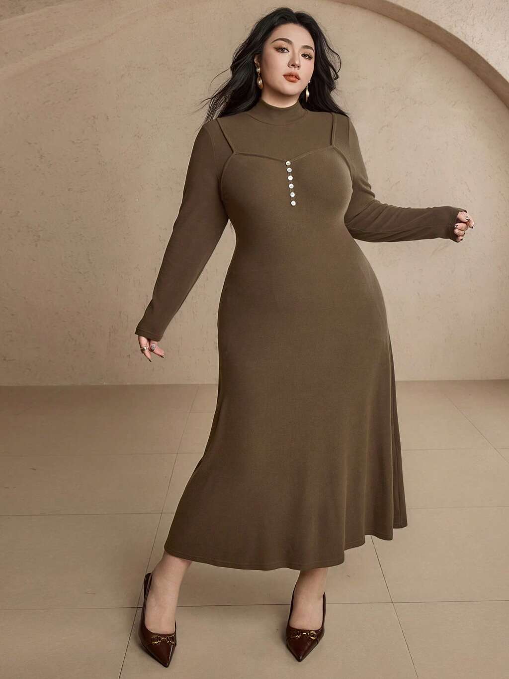 Dazy Plus Plus Size Women Solid Color Elastic Fitted 2 In 1 Design Party Maxi Dress, Elegant