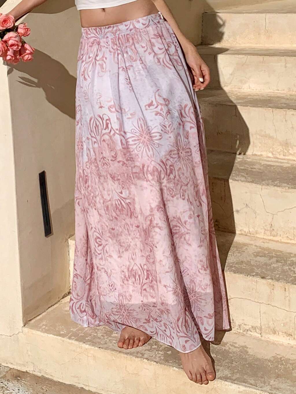 Women's Elastic Waist Printed Casual Skirt, Suitable For Leisure And Resort Summer Boho