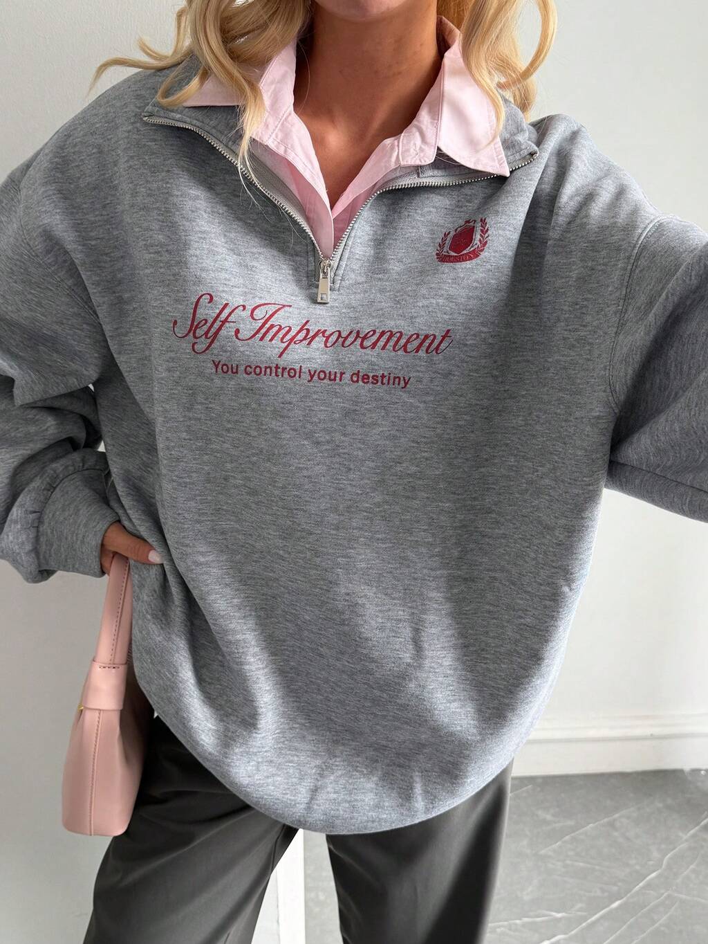 Women's Casual Slogan Embroidered Sweatshirt, Autumn/Winter
