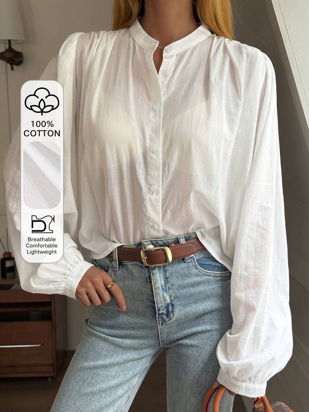 Women's Loose Solid Color Stand Collar Long Sleeve Elegant Summer Blouse