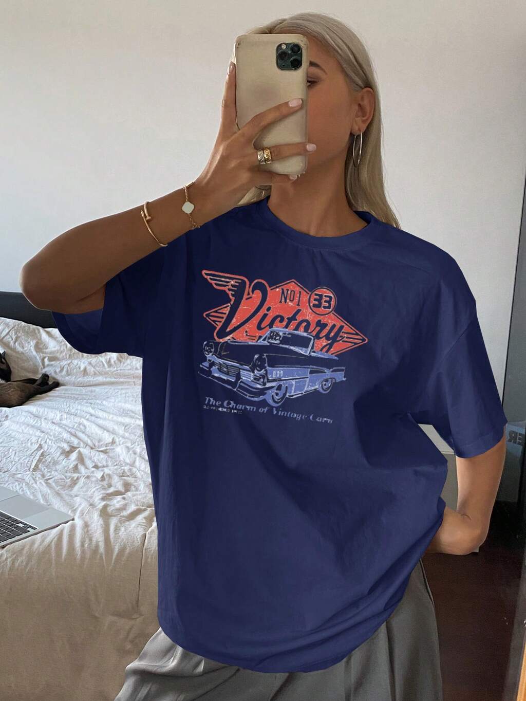 Crew Neck Loose Enough Print Short Sleeve Women T-Shirt Graphic Tee