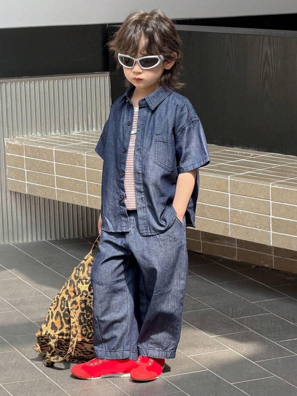 Young Boy Short Sleeve Top & Shorts Denim Set For Camping