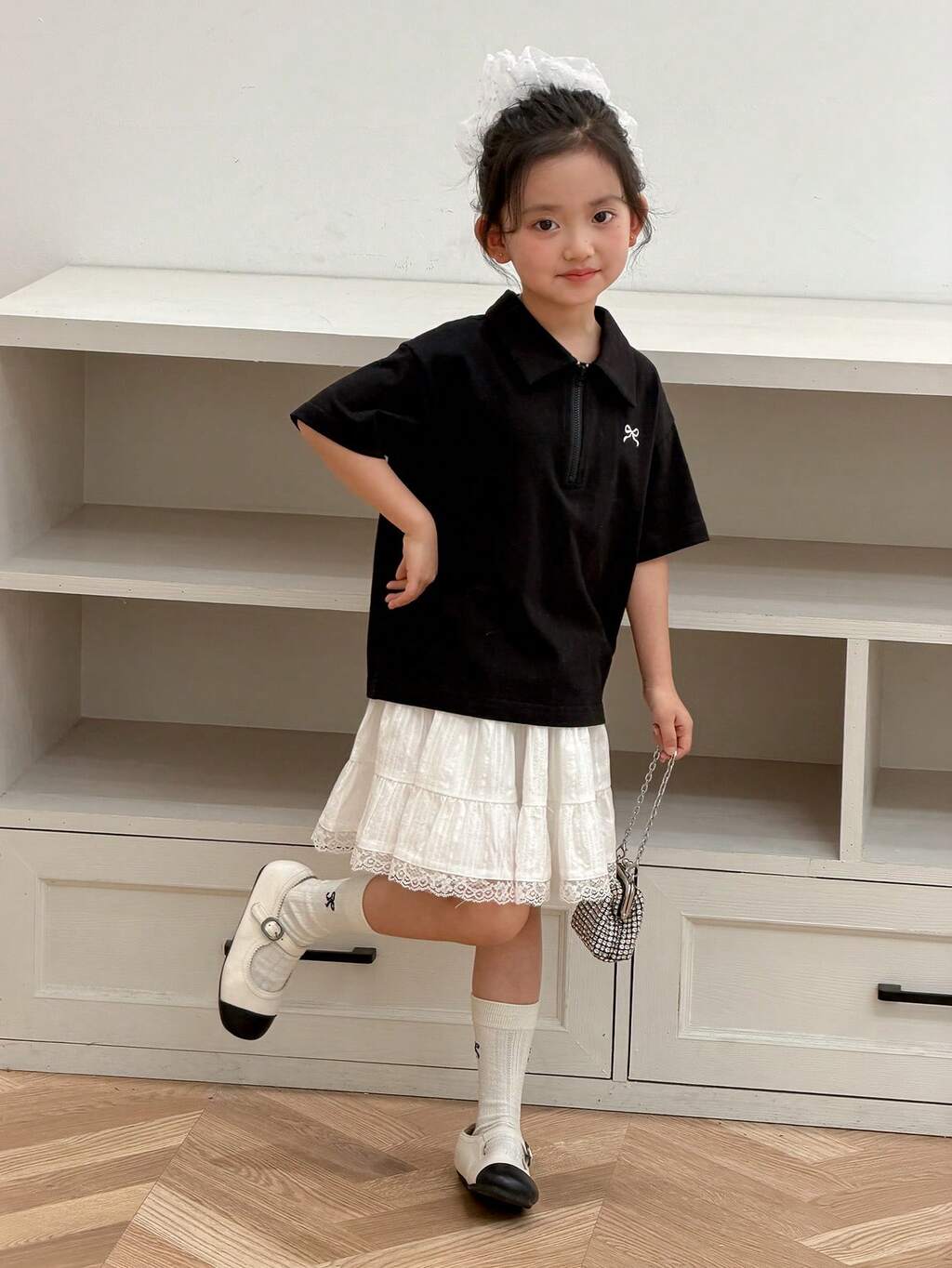 Young Girls Polo Collar Embroidered English Summer Short Sleeve T-Shirt