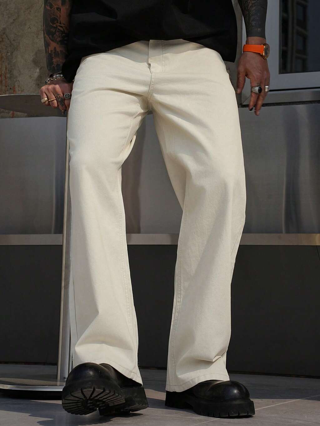 Men's Simple Solid Color Straight-Leg Pockets Denim Jeans, Summer