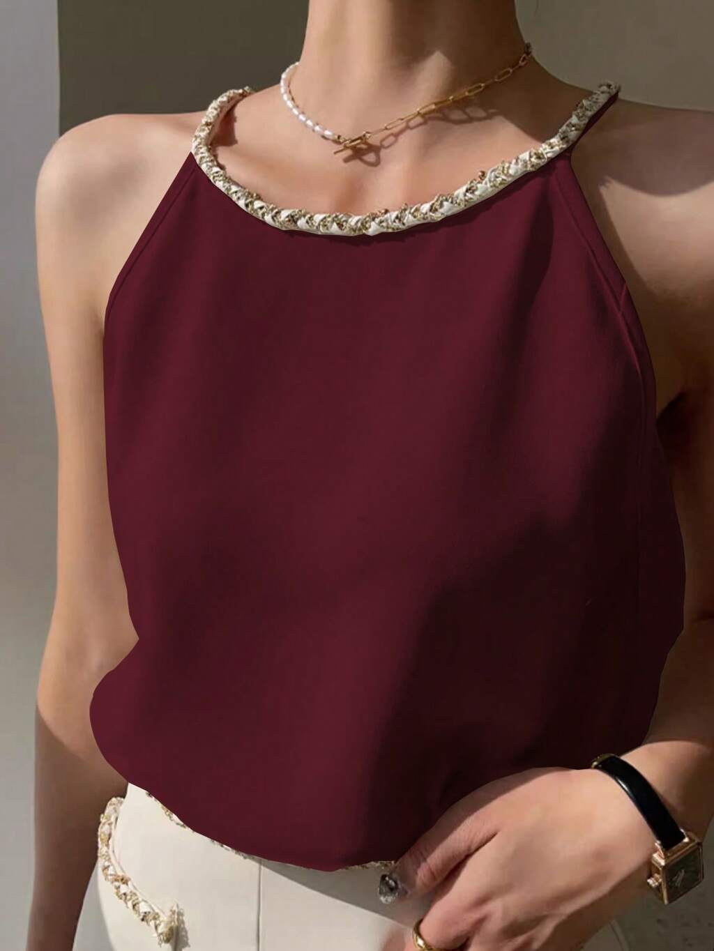 Women's Solid Color Pleated Elegant Halter Neck Camisole