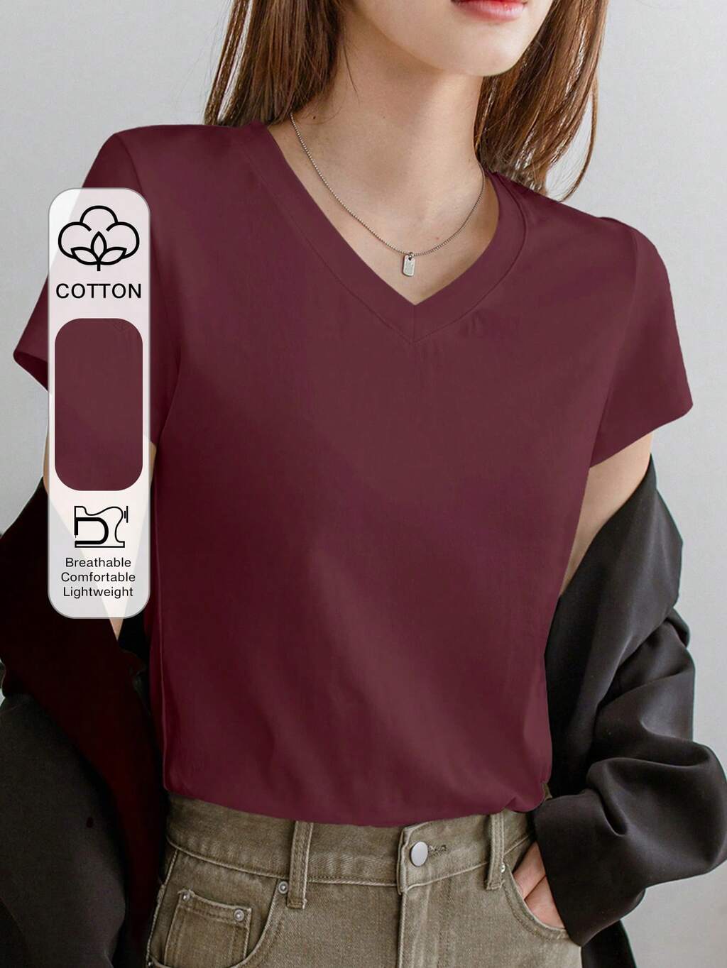 Women's V-Neck Short Sleeve Solid Color Minimalist T-Shirt, Casual Everyday Wear Summer Business Casual Women, Teacher