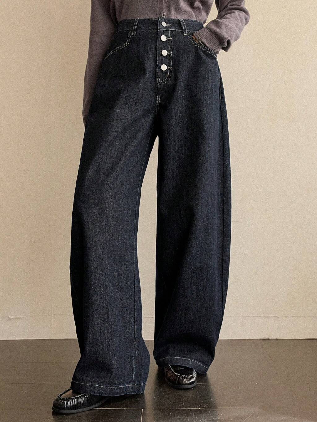 Women's Loose Casual Vintage Washed Straight Leg Jeans, Autumn/Winter Business Casual Woman
