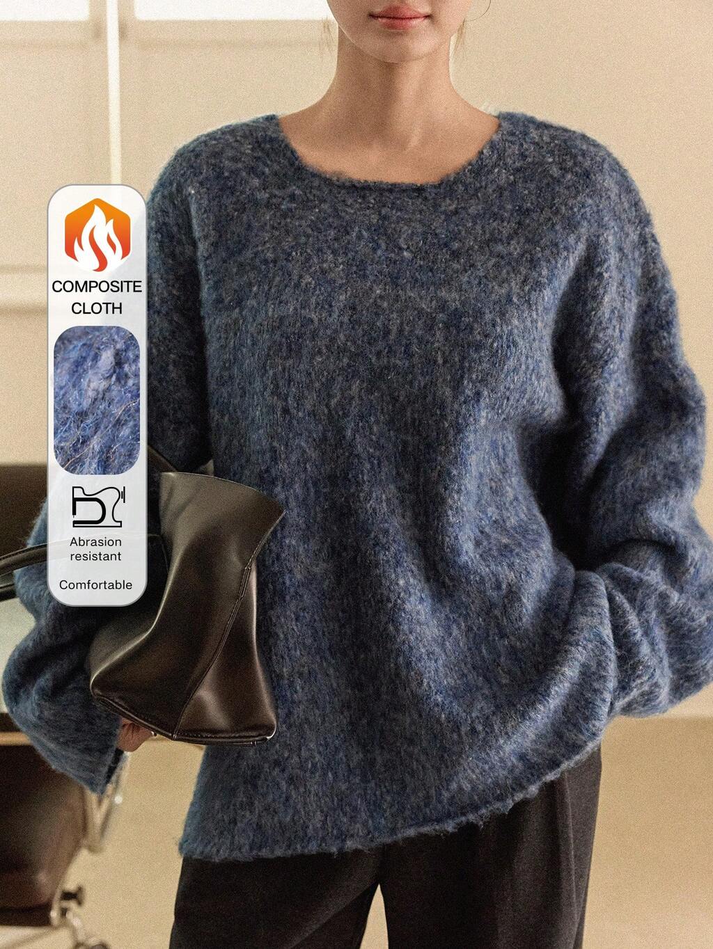 Women's Loose Business Casual Thick Fuzzy Minimalist Solid Color Knit Sweater, Suitable For Autumn And Winter Office Wear