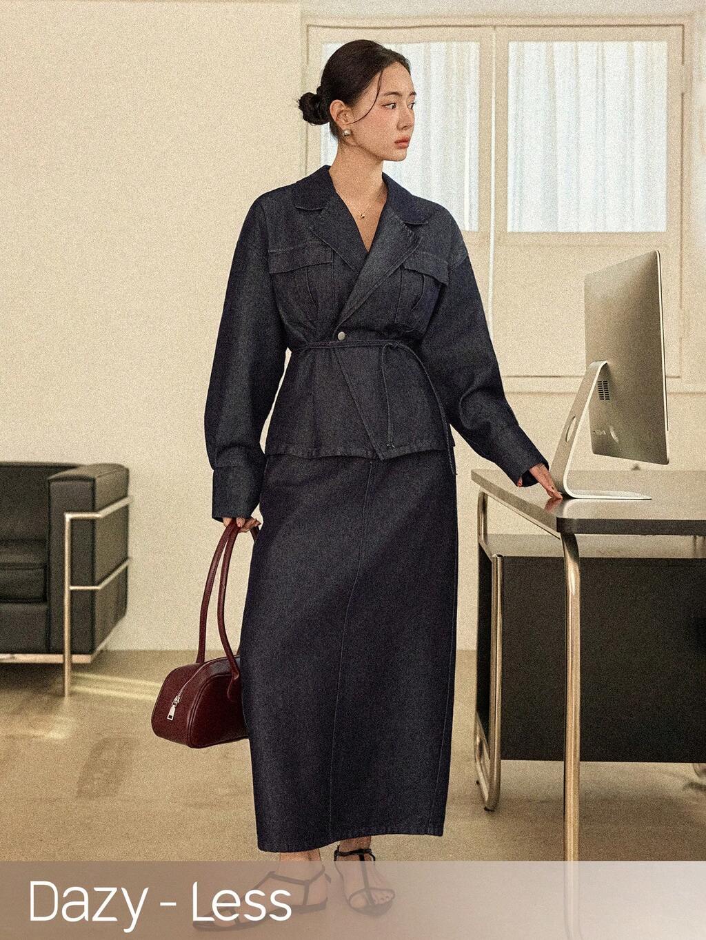 Women's Casual Belted Denim Jacket Business Casual Woman