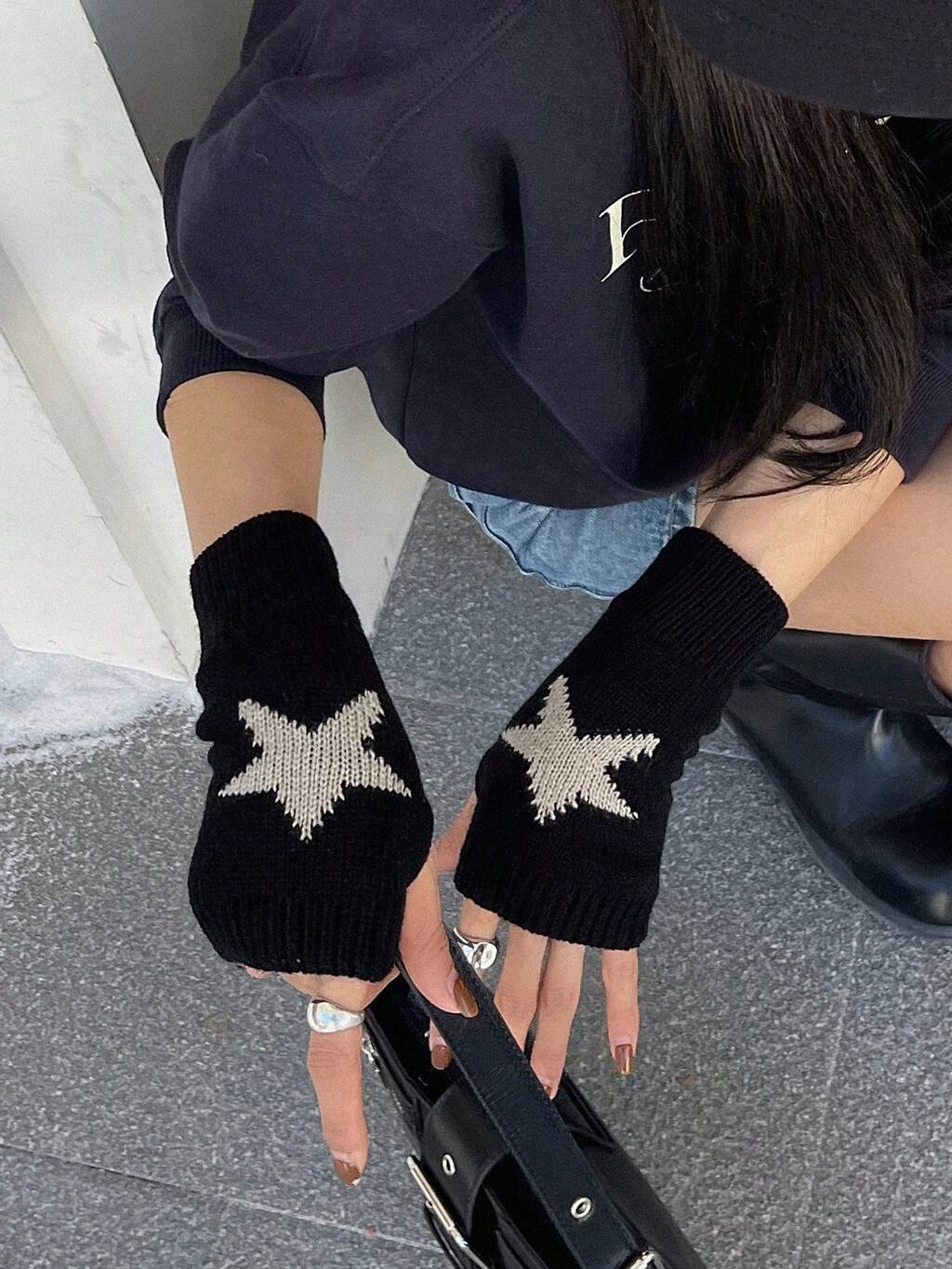 Star Print Fingerless Gloves