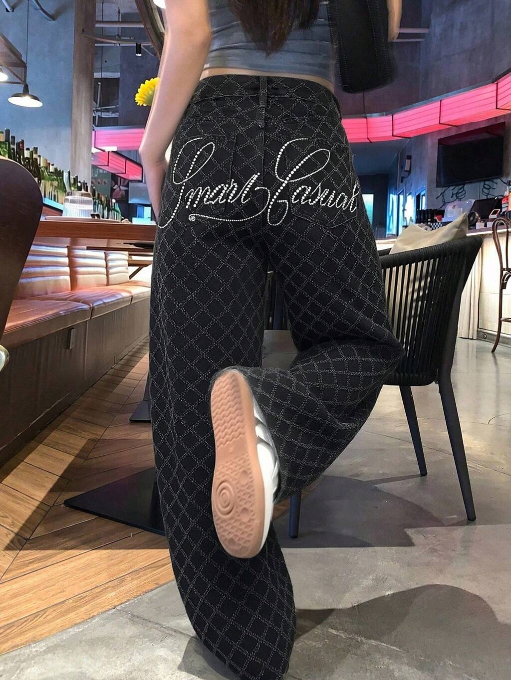 Women's Regular Waist Rhinestone Embellished Loose Straight Leg Casual Jeans