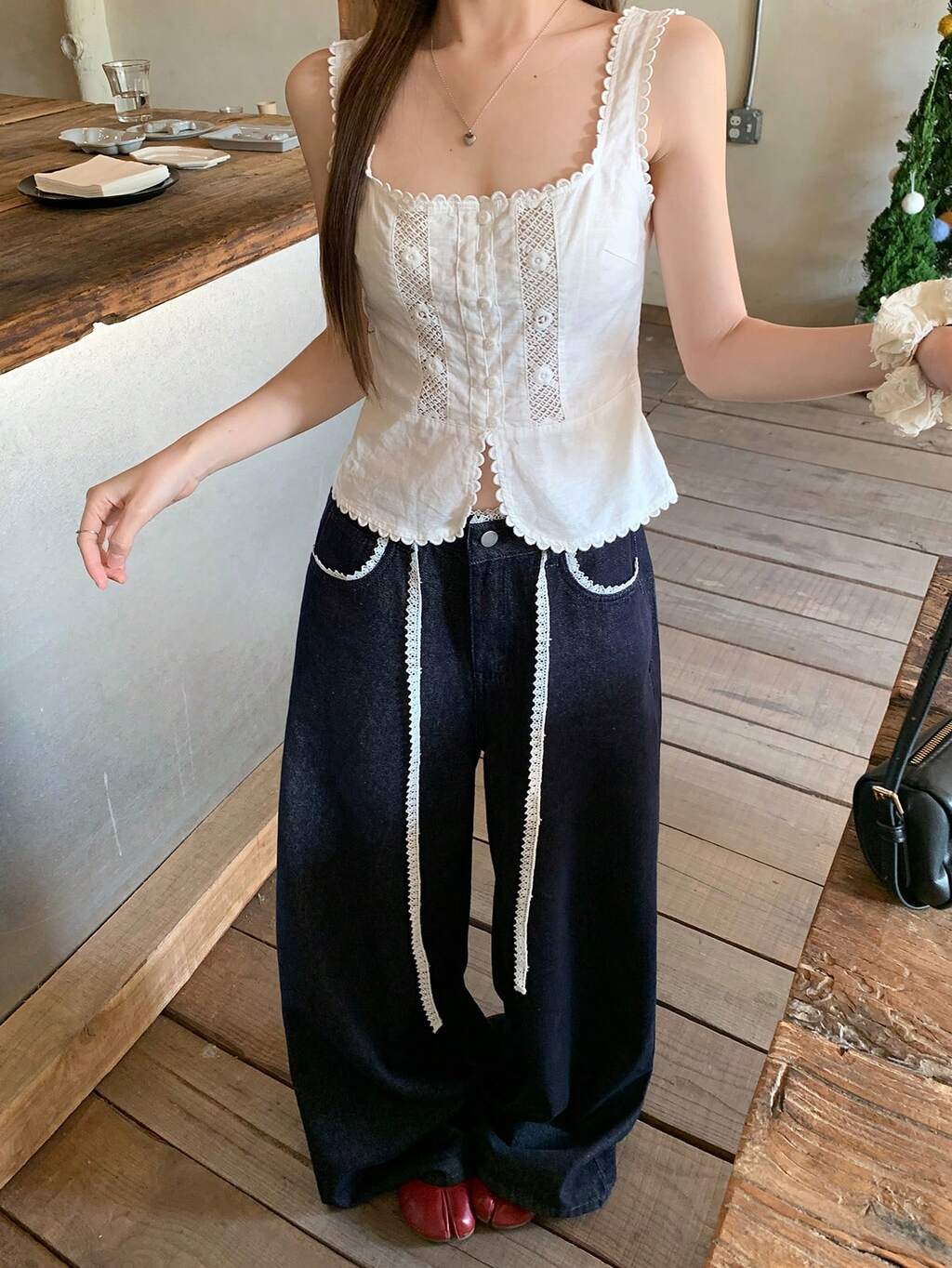 Women's Casual & Commute Lace Trim Wide Leg Jeans