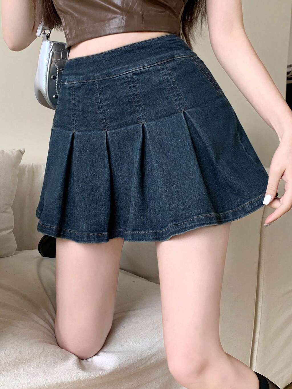 Women's Pleated Hem Mini Skirt Jeans Skirt Fall/Winter