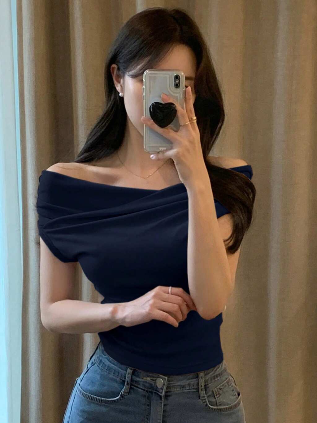 Women's Solid Color Strapless Off Shoulder Elegant Cropped Blouse, Autumn Going Out Tops