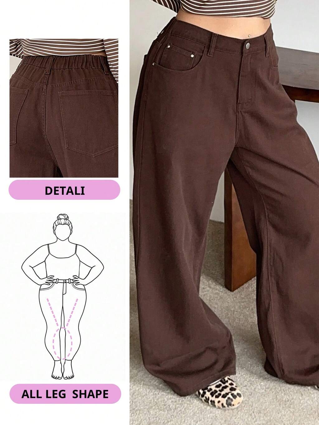 Dazy Plus Plus Size Women Casual Loose Waist Solid Color Long Straight Leg Jeans, All Season