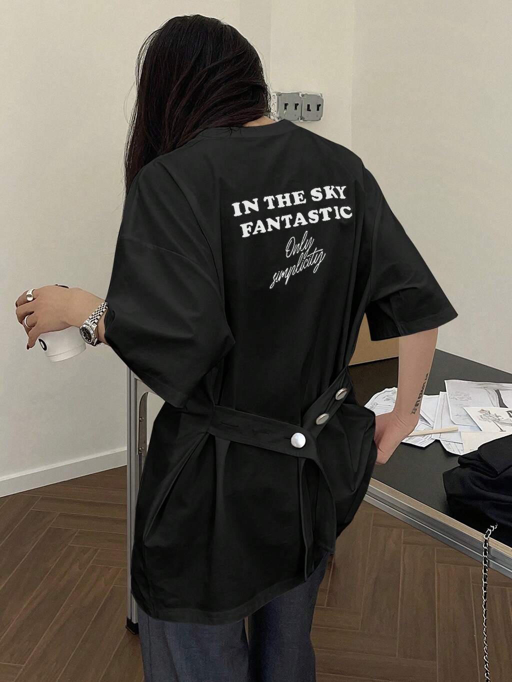 Summer Short Sleeve Oversized T-Shirt With Letter Print Preppy Tops
