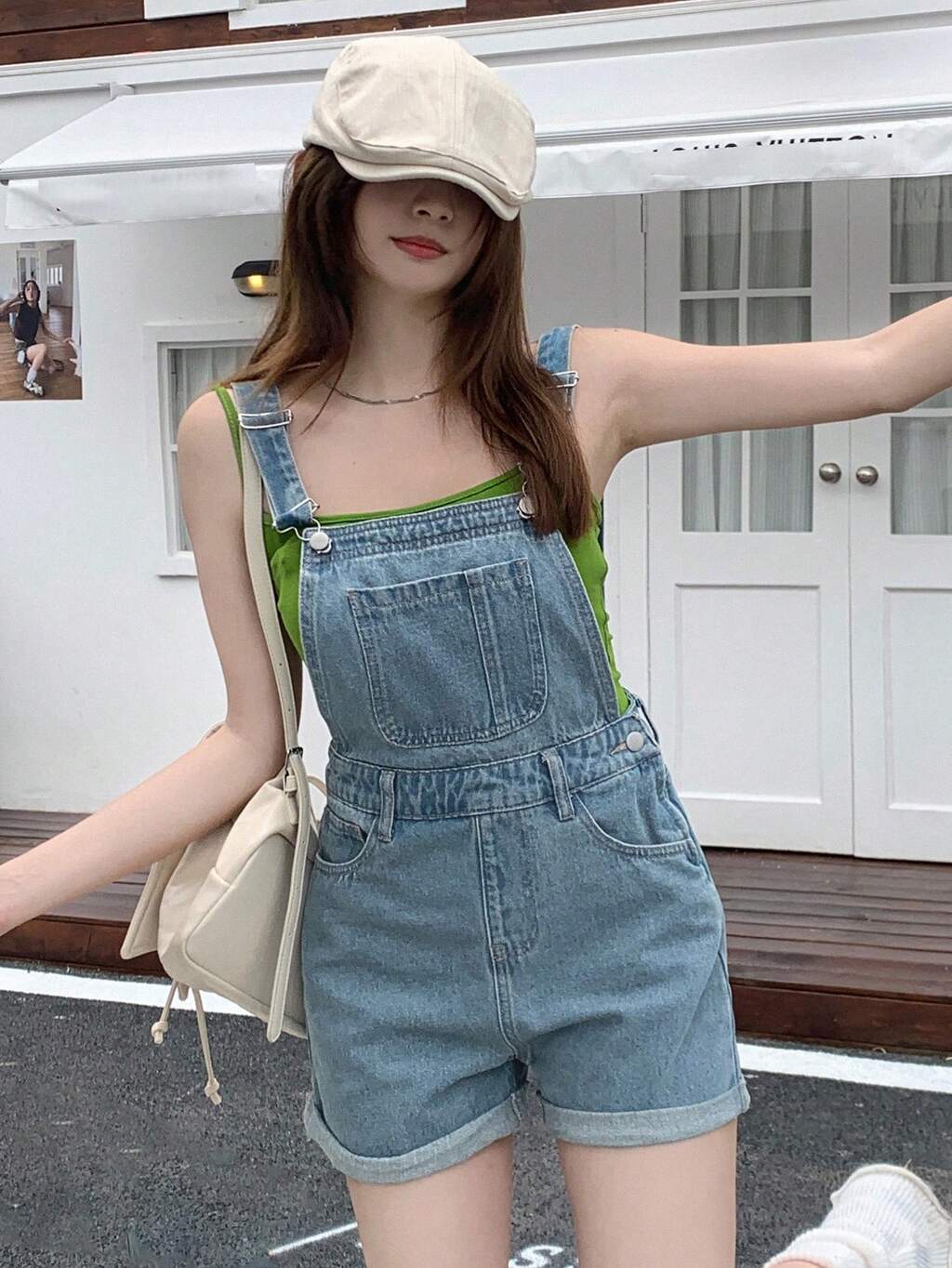 Women's Solid Color Sleeveless Fashionable Summer Versatile Casual Denim Jumpsuit