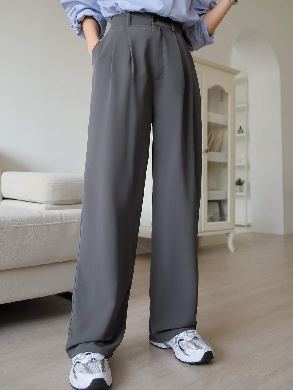 Fold Pleated Slant Pocket Pants, Women Dress Pants Business Attire
