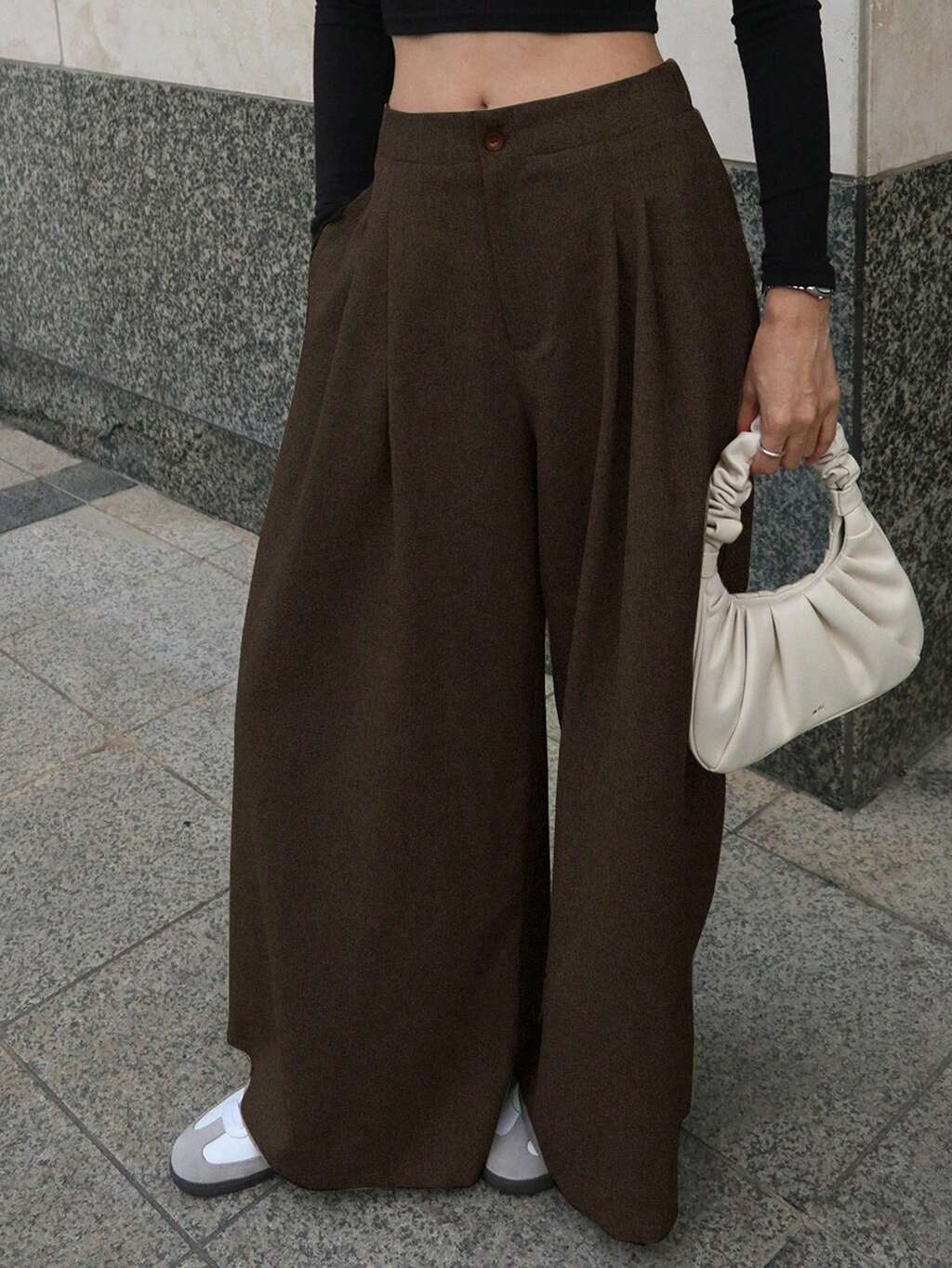 High Waist Plicated Detail Wide Leg Suit Pants,Women Dress Pants Business Attire