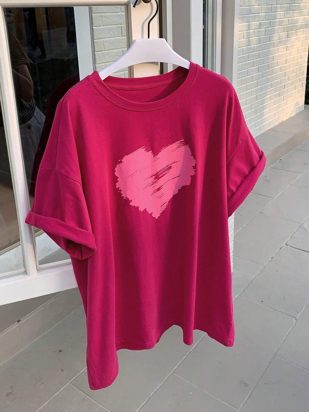 Women's Heart Print Loose Round Neck Casual Short Sleeve T-Shirt,Graphic Tees