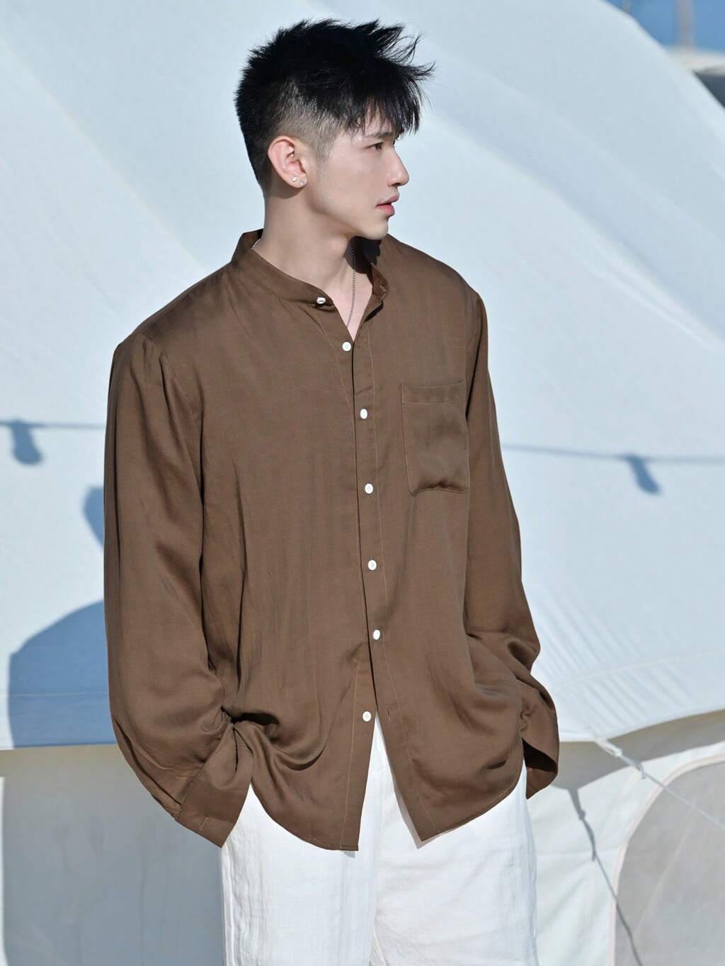 Herren Langarm Hemd mit Knopfleiste und Tasche, simples Design, Herbstkleidung