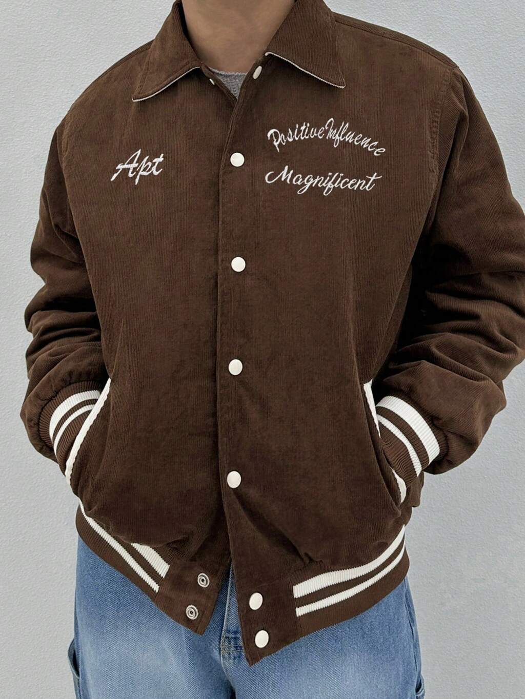 Herren Jacke mit Buchstaben Stickerei, Einfachreihig Lässig, Herbst