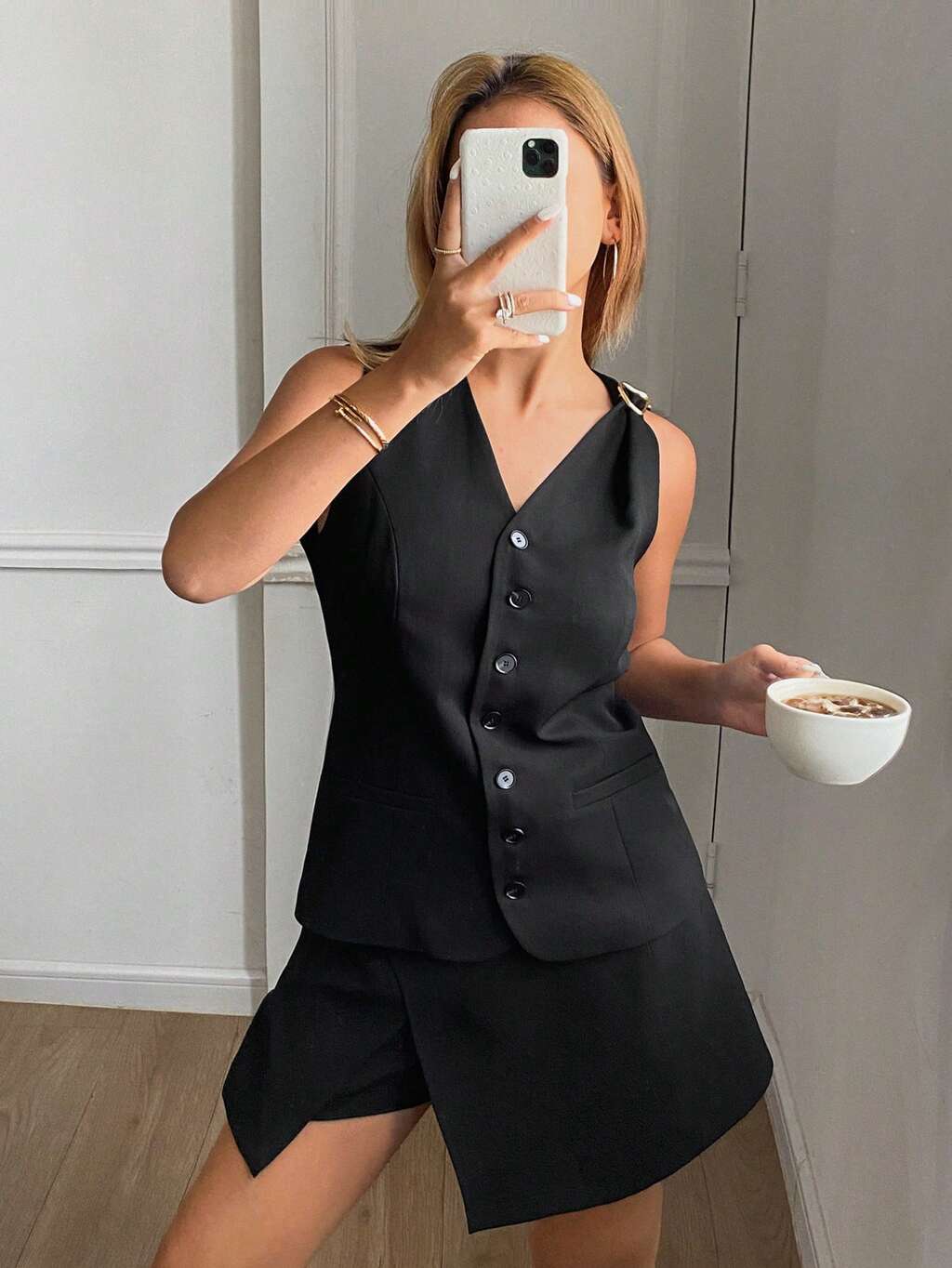Elegantes, lässiges Zwei-Teile-Set für Damen aus passendem farblich abgestimmtem Weste-Jacke & Shorts/Rock, Sommer, kurze Damen Sets