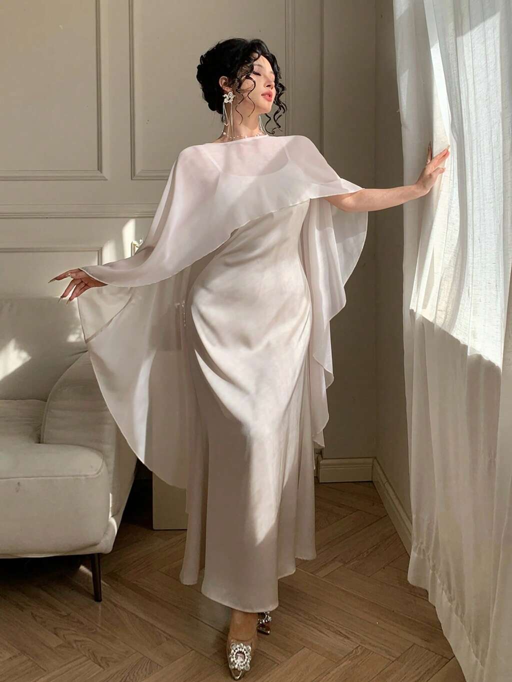 Damen elegantes einfarbiges ärmelloses Kleid mit unregelmäßiger Überlagerung, 2-teiliges Set, Frühling/Sommer