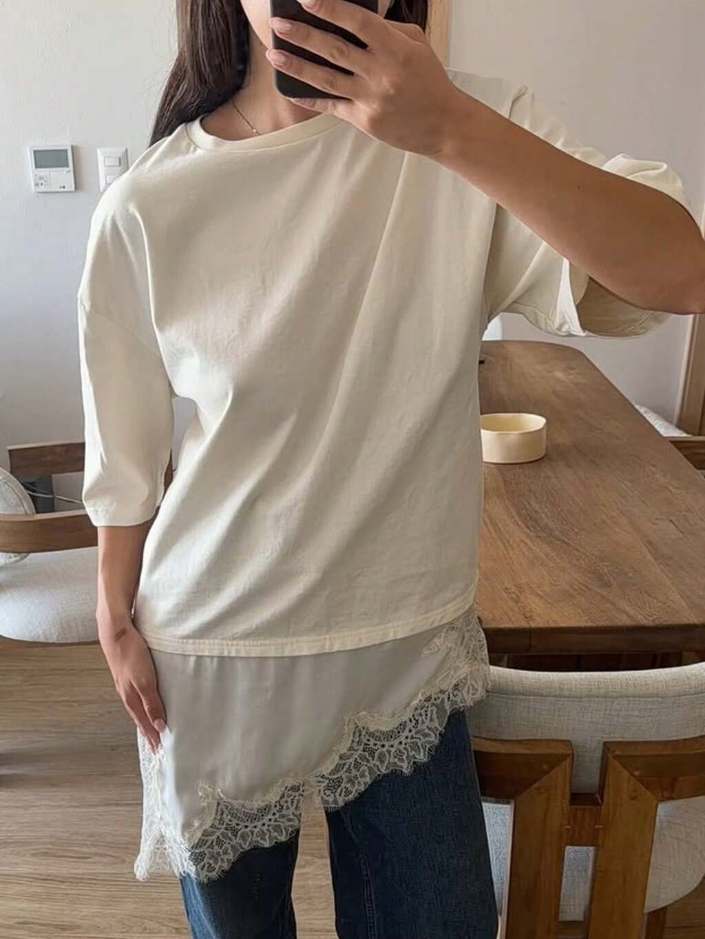 Damen Loose Lace Patchwork T-Shirt, Frühling