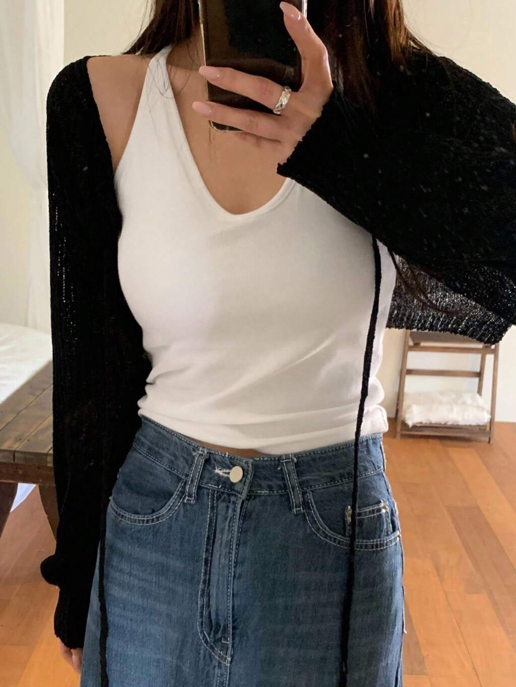 Damen einfarbiges Träger-Tanktop, koreanischer Sommerstil