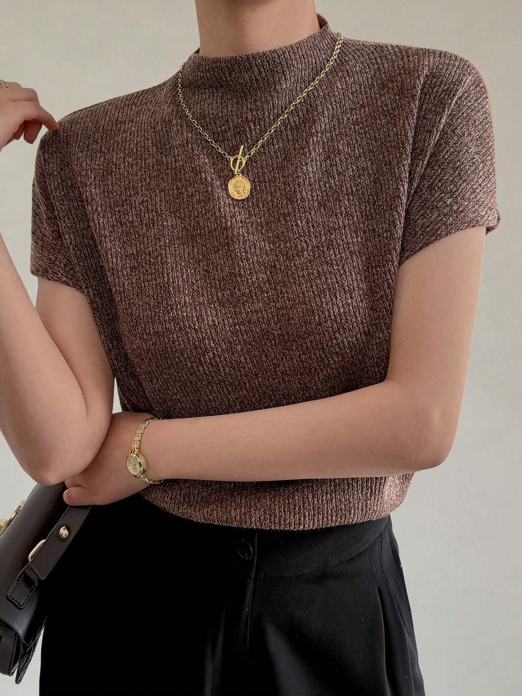 Damen einfarbiges minimalistisches Kurzarm T-Shirt, lässiger Sommertag-Alltagsartikel