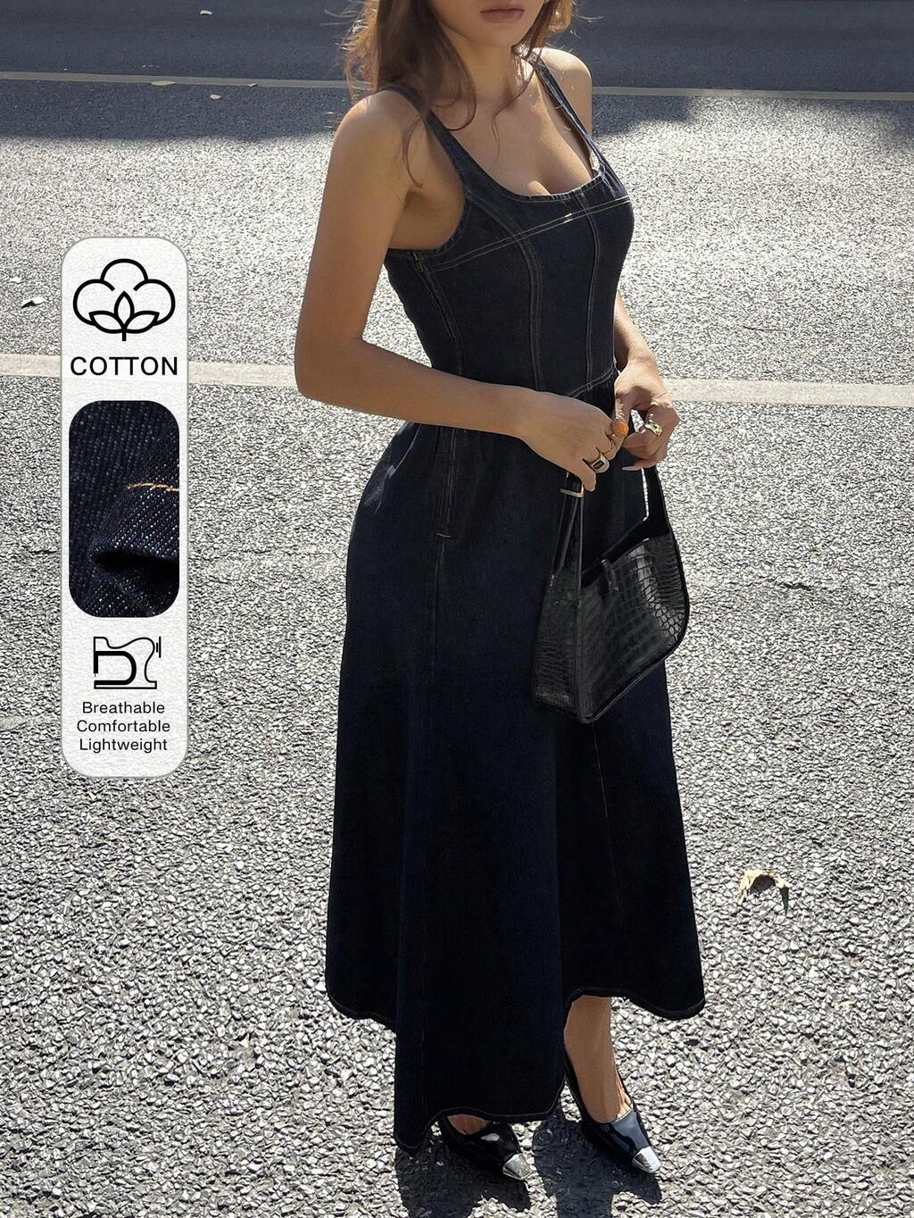 Damen lässiges, ausgewaschenes, ärmelloses langes Denim Kleid