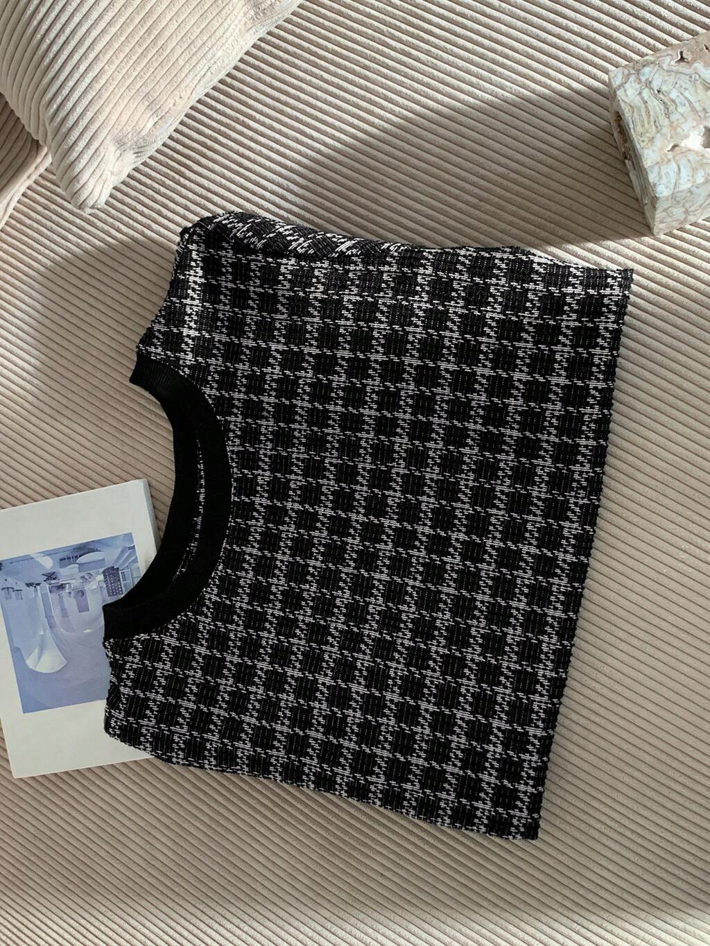 Dazy Petite Plus Damen Große Größen Farbblock Karomuster Kurzarm figurbetontes Pullover T-Shirt, Frühling/Sommer