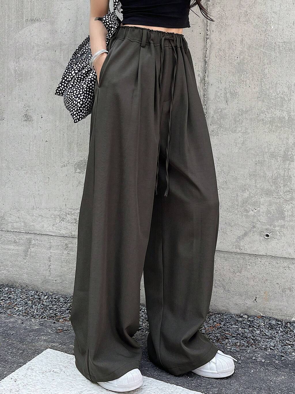 Damen Einfarbige Lässig Hose mit Tunnelzug an der Taille und weitem Bein