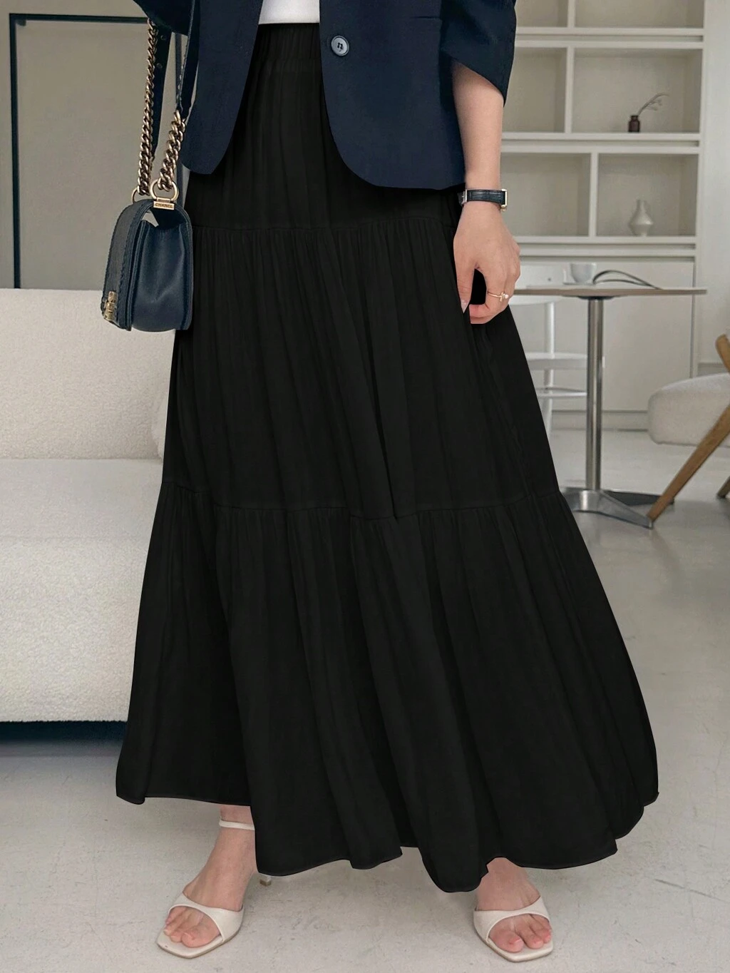 Damen einfarbiger minimalistischer plissierter A-Linien Rock, lässiger Sommertag, Volant