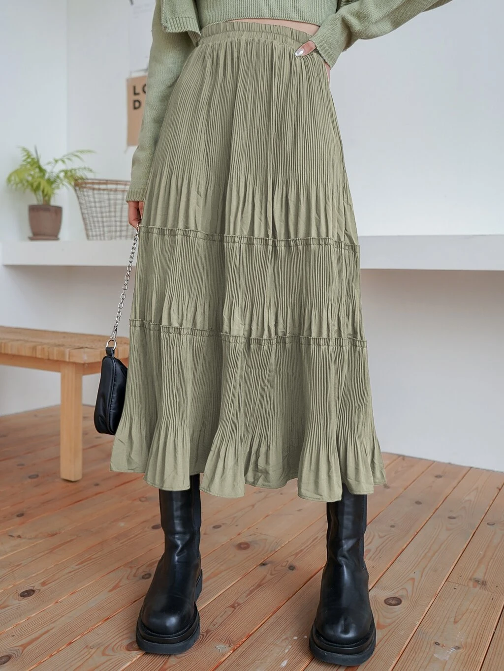 Hoher Taillenbund Plissee Rüschen Saum Rock, Rückkehr zur Schule Kleidung Herbst