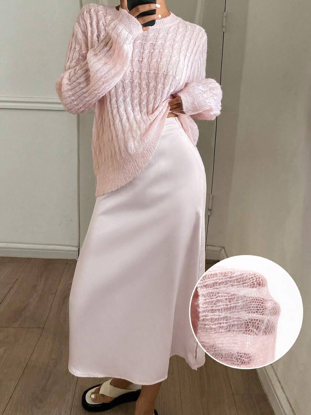 Set de 2 piezas: Top de manga larga holgado de punto y falda larga casual para mujer, primavera