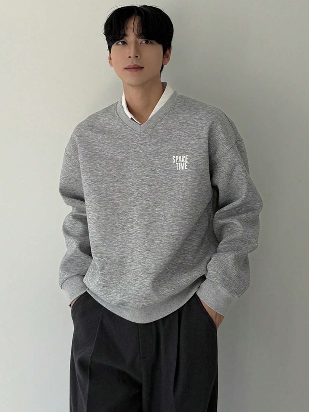 Conjunto de pantalones grises sólidos con diseño de pliegue y sudadera para hombre, primavera