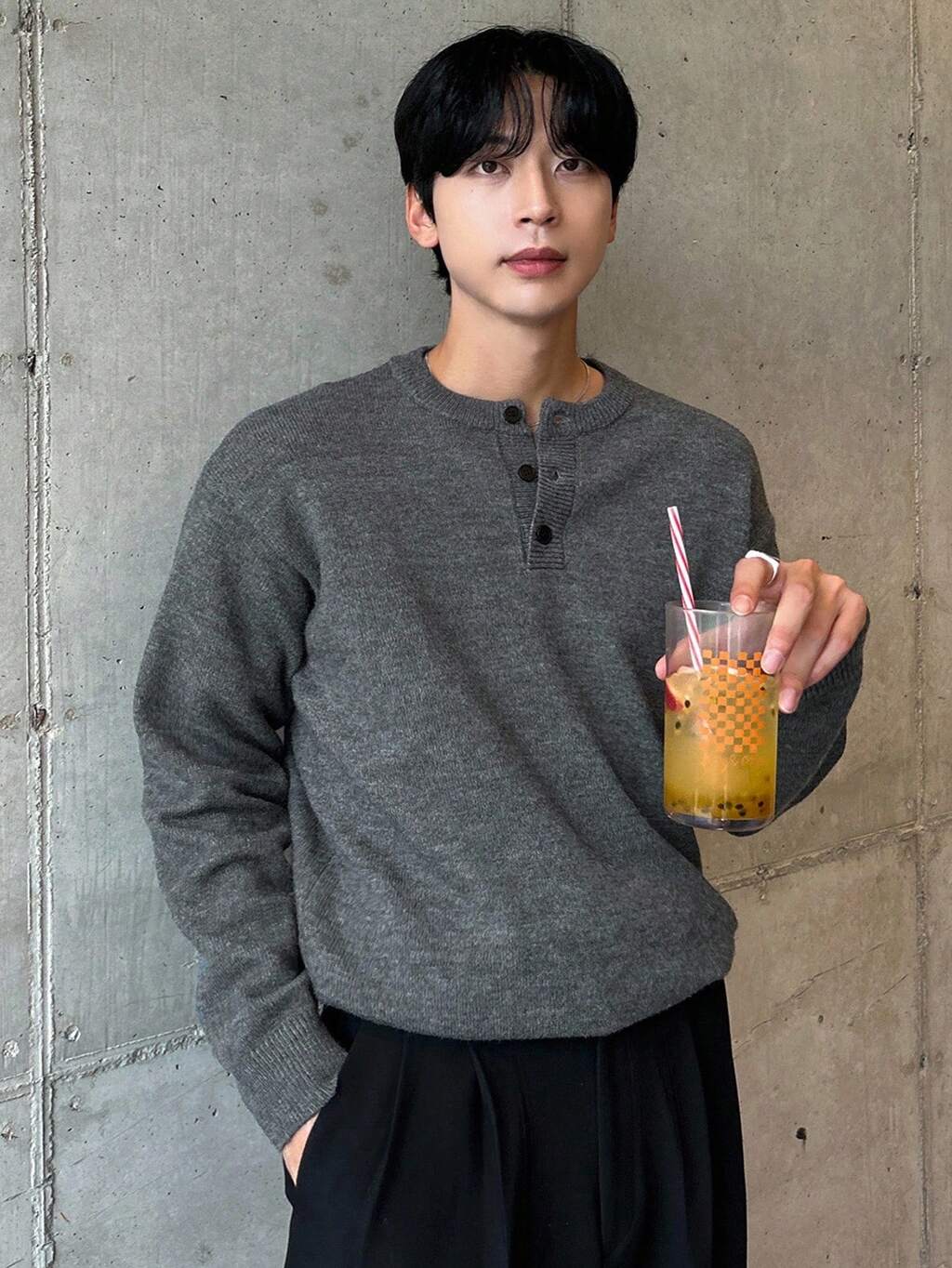 Suéter de punto con cuello redondo y media cremallera, con estampado floral en gris oscuro, para otoño