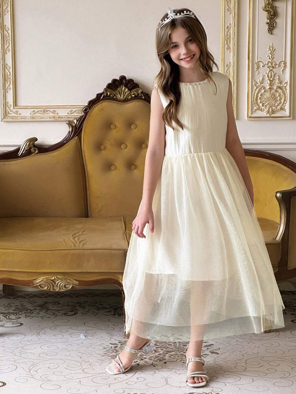 Vestido de verano sin mangas de unicolor de moda para niñas preadolescentes, ropa de vuelta al colegio
