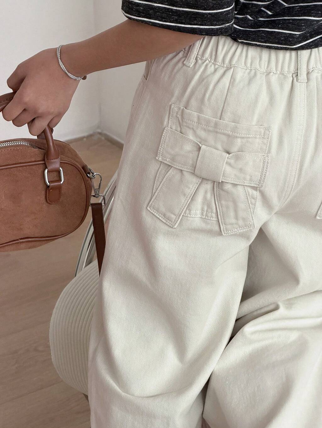Jeans cargo informales con bolsillos para niña preadolescente, otoño