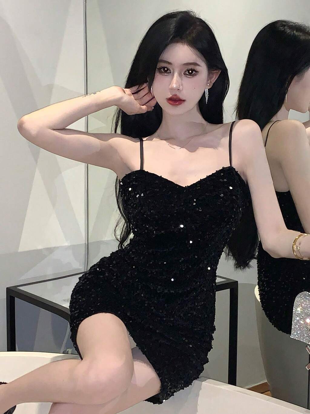 Vestido de mujer de unicolor con tirantes finos y sexy, para cumpleaños, Nochevieja, fiestas de verano, vestido de fiesta de club, vestido de graduación, vestido de baile de graduación, vestido de mujer elegante con lentejuelas, vestido brillante de carnaval