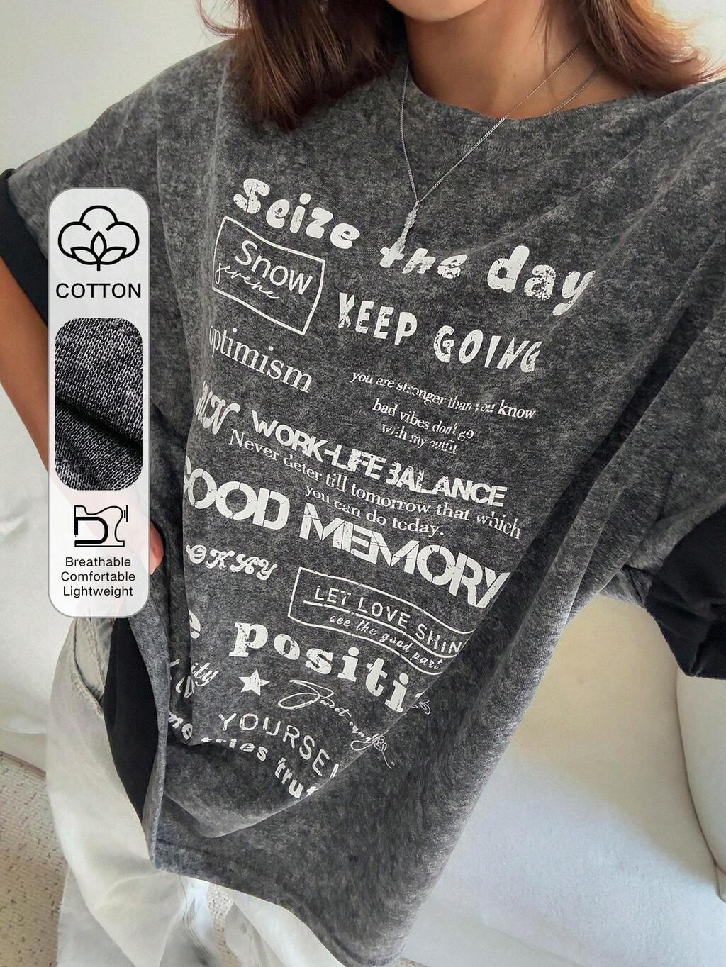 Camiseta casual de mujer con cuello redondo, manga corta, tela desgastada, estampado suelto, camiseta gráfica oversize estilo Y2K