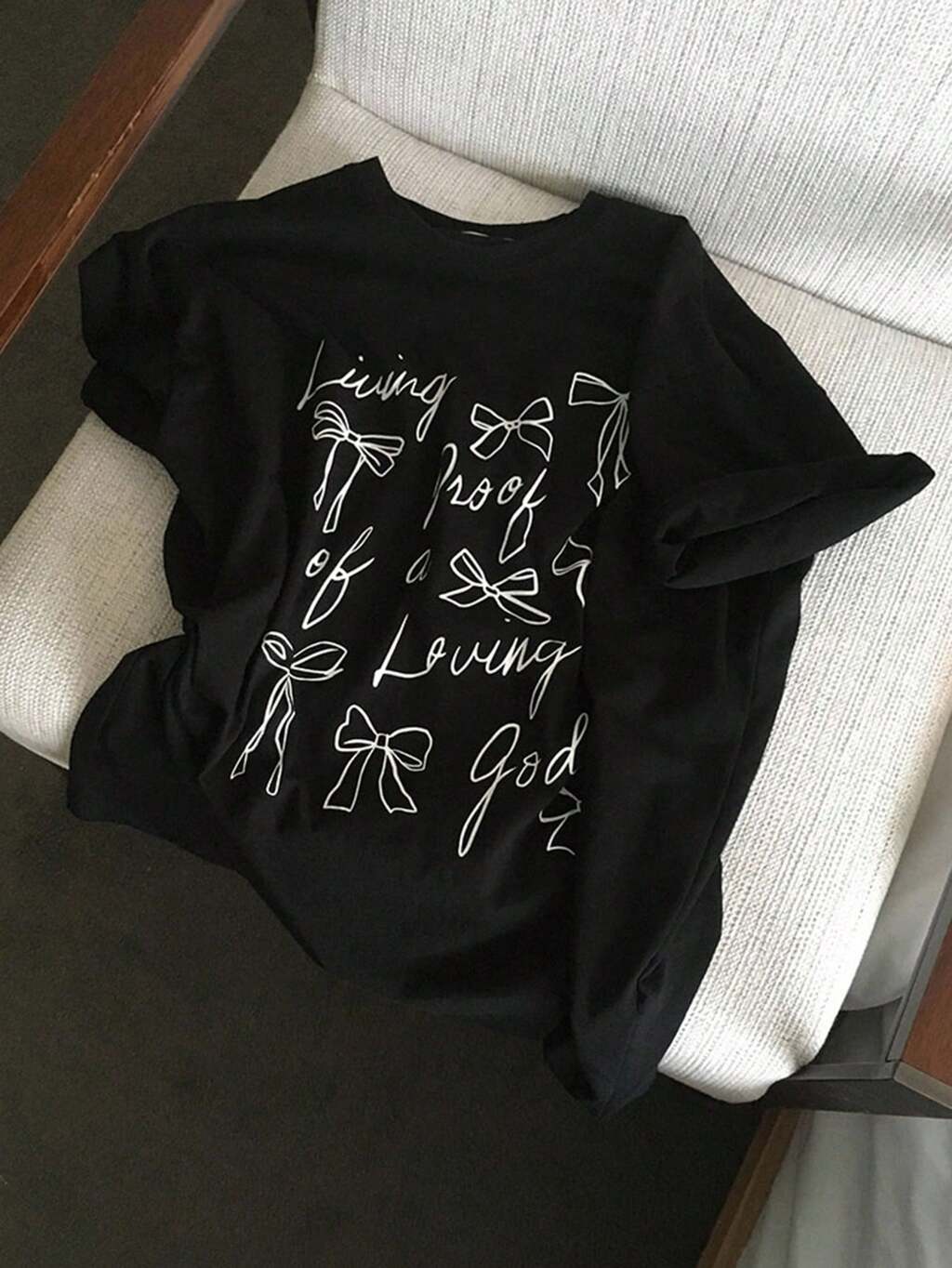 Camiseta casual de mujer de manga corta, cuello redondo, con estampado de letras holgadas