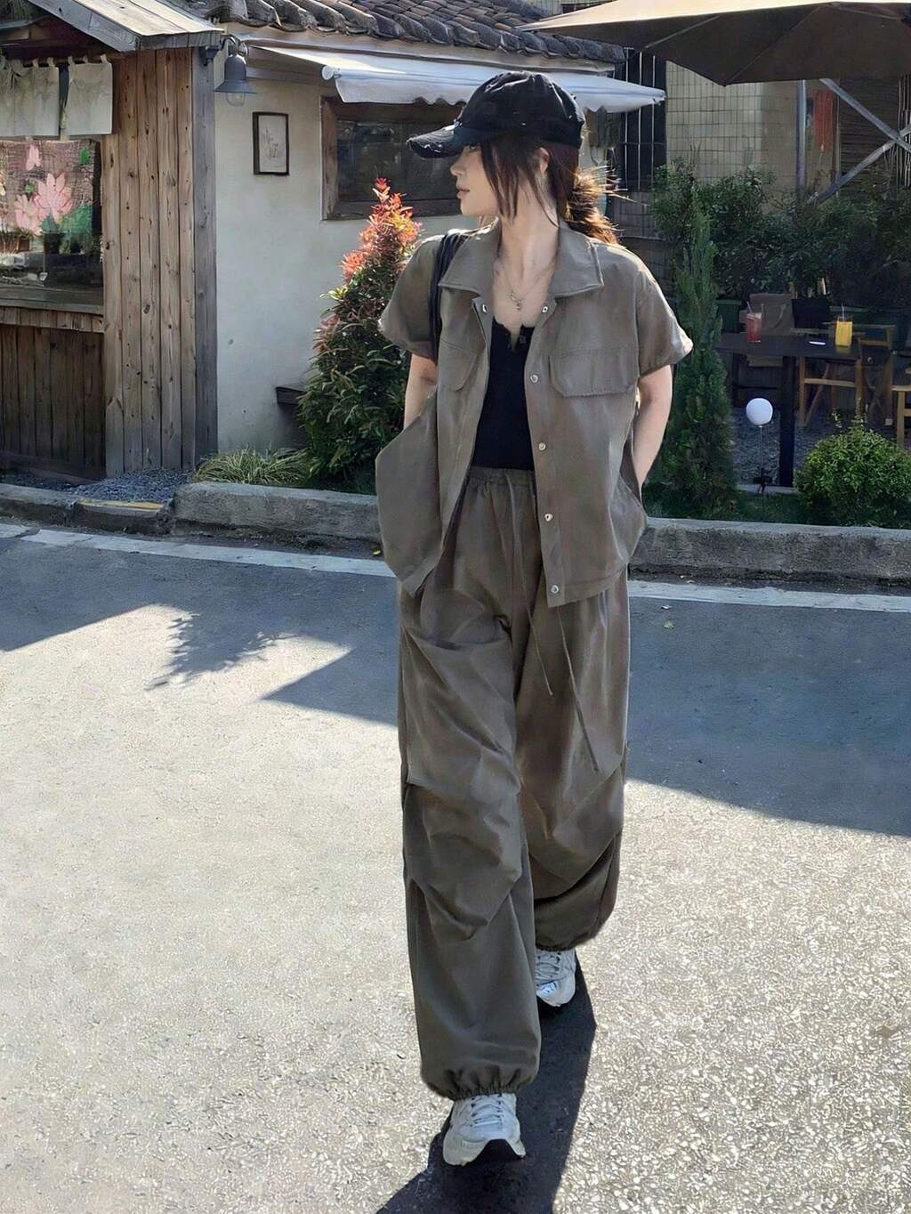Conjunto de dos piezas de chaleco sin mangas holgado de unicolor y falda larga de línea A tipo cargo casual, adecuado para deportes y vacaciones de primavera/verano