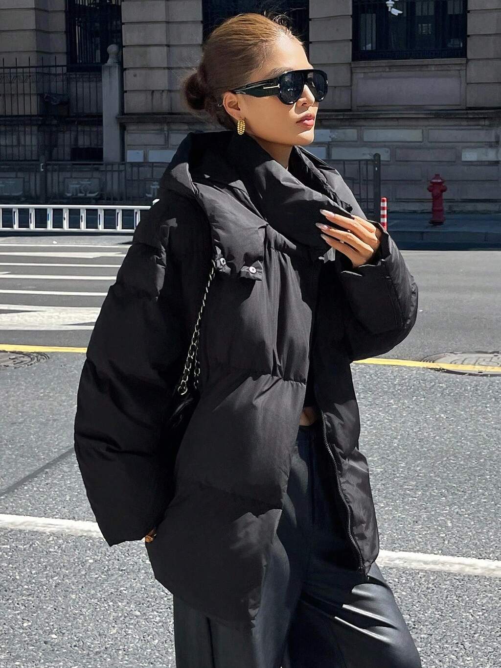 Abrigo acolchado con capucha holgada y brillante para mujer, abrigo acolchado cálido y ligero, con lujoso brillo perlado, chaqueta de otoño/invierno