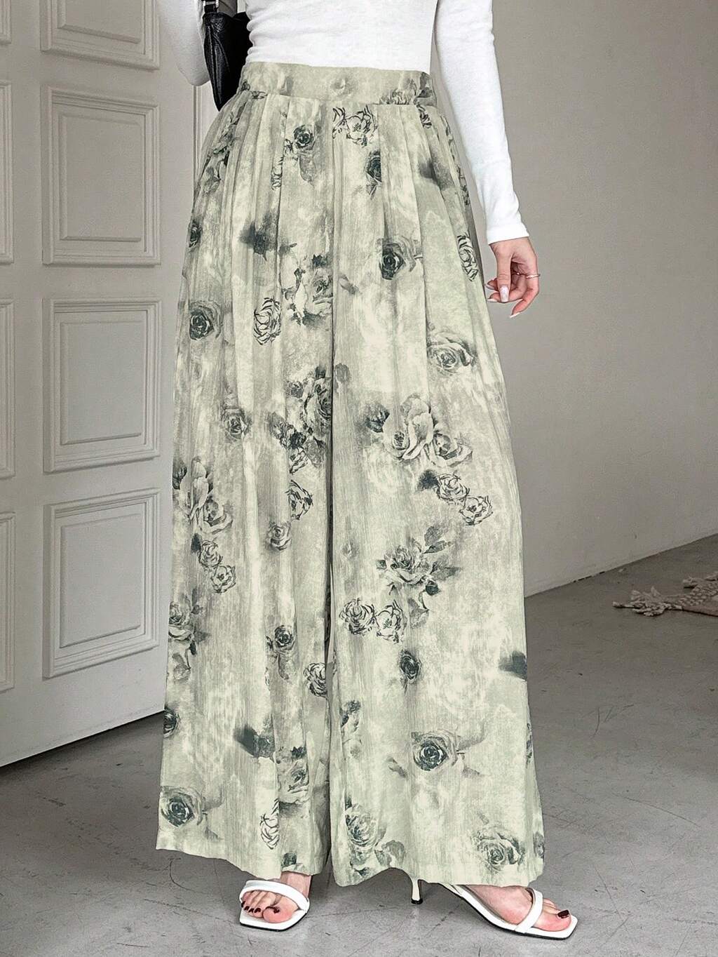 Pantalones culotte de pierna ancha, estampado floral, holgados, de longitud hasta el tobillo, para mujer, para primavera/verano